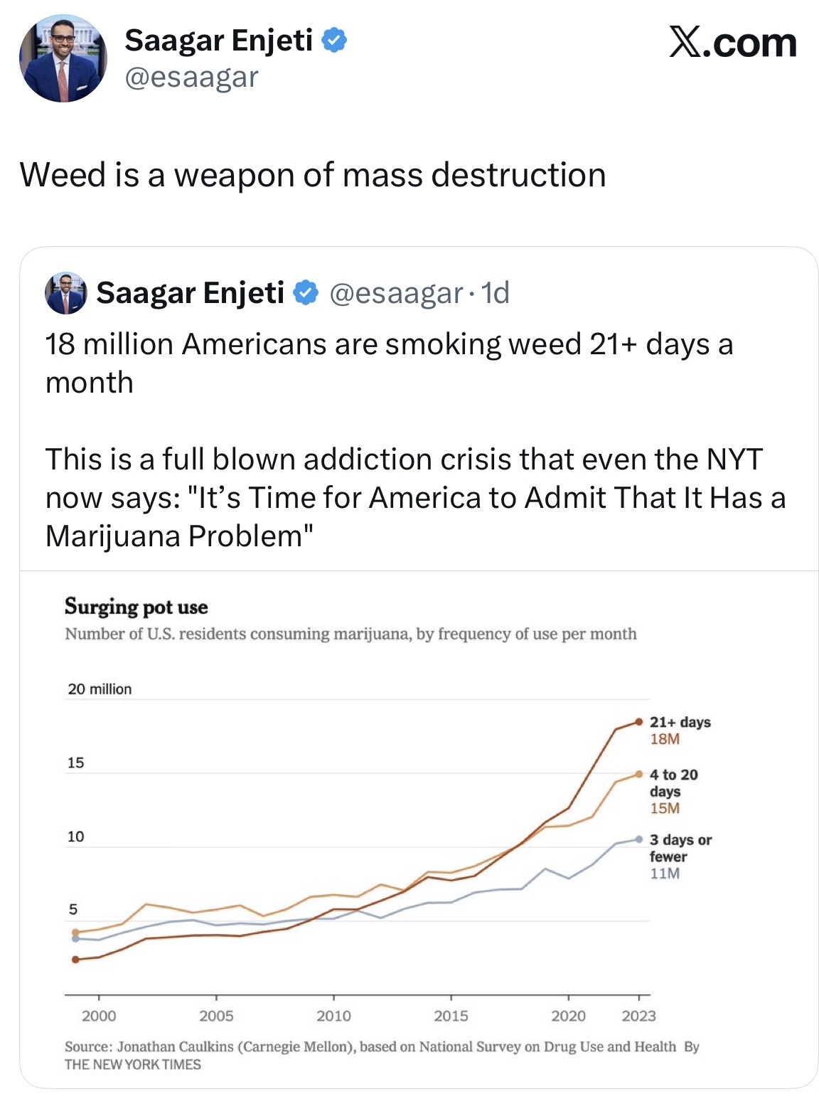 I saw this coming for years, which is why I voted no to legalizing marijuana.